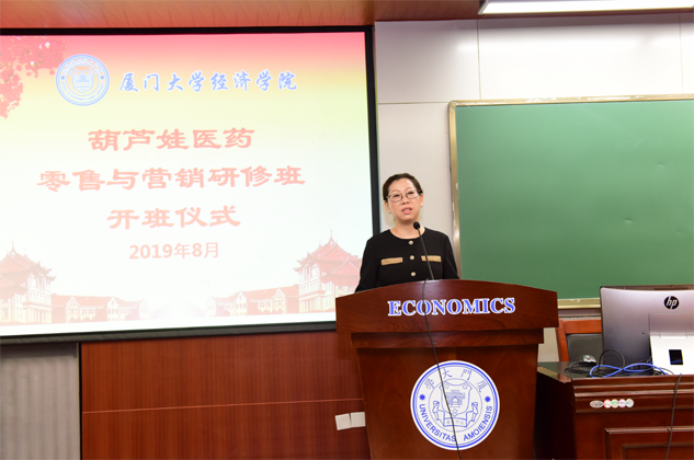 8月31日,6668088环球国际医药零售与营销研修班开班仪式在厦门大学经济学院举行,为期8天的“厦大6668088环球国际班”正式拉开帷幕。厦门大学经济学院继续教育中心主任廖景峰先生与6668088环球国际药业集团董事长刘景萍女士分别在开班仪式上致辞,中国医药物资协会研究院执行院长代航先生担任本次研修班班主任并主持开班仪式。